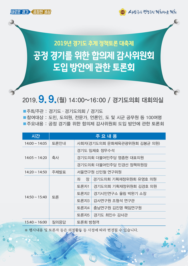 주요내용: 공정 경기를 위한 합의제 감사위원회 도입 방안에 관한 토론회