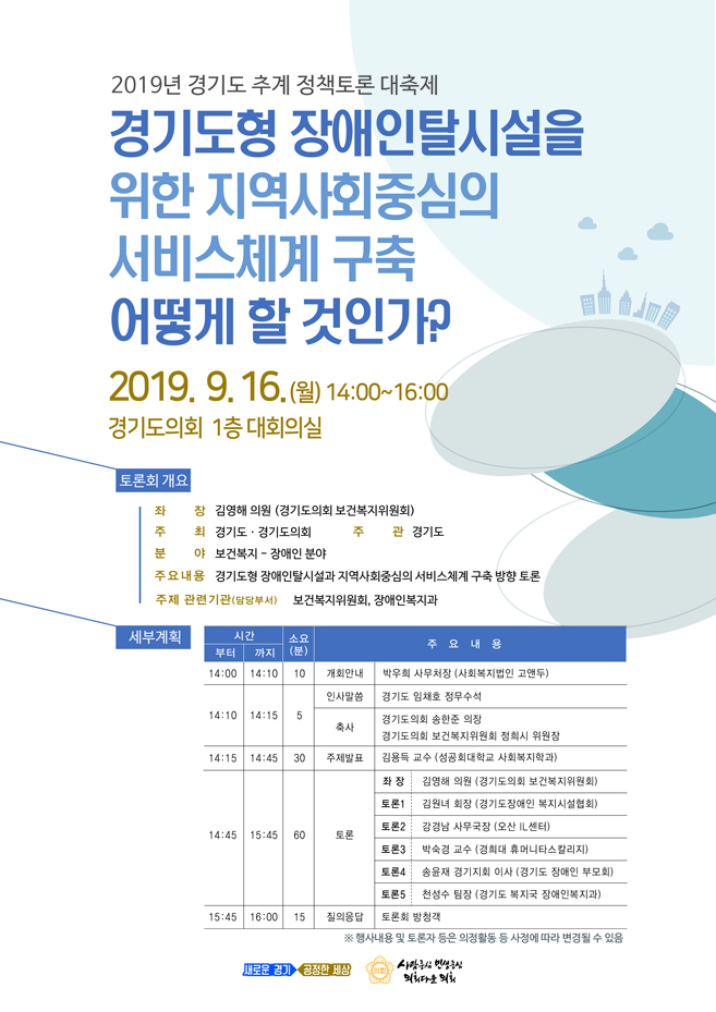 제목: ‘경기도형 장애인탈시설을 위한 지역사회중심의 서비스체계 구축, 어떻게 할 것인가?’