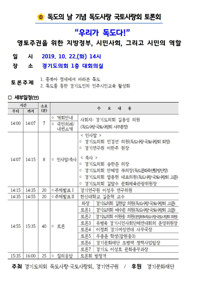 주최: 경기도의회·독도사랑·국토사랑회·경기연구원