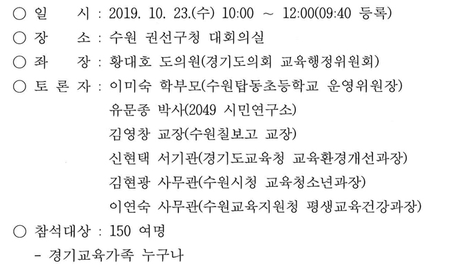 제목: ‘지역주민과 함께하는 학생 학습권 보장을 위한 토론회’