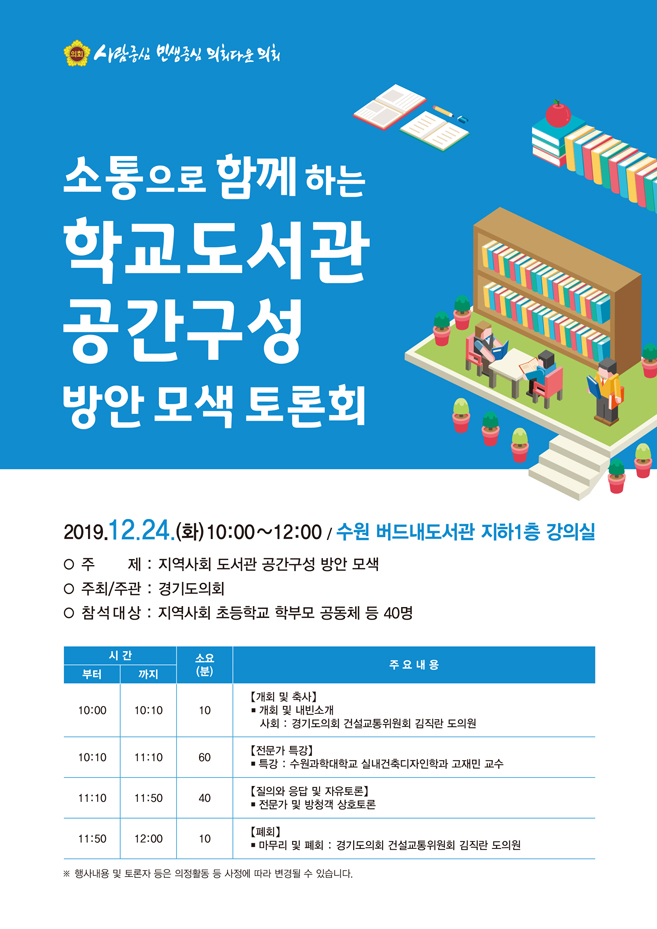 제목: 소통으로 함께 하는 학교도서관 공간구성 방안 모색 토론회