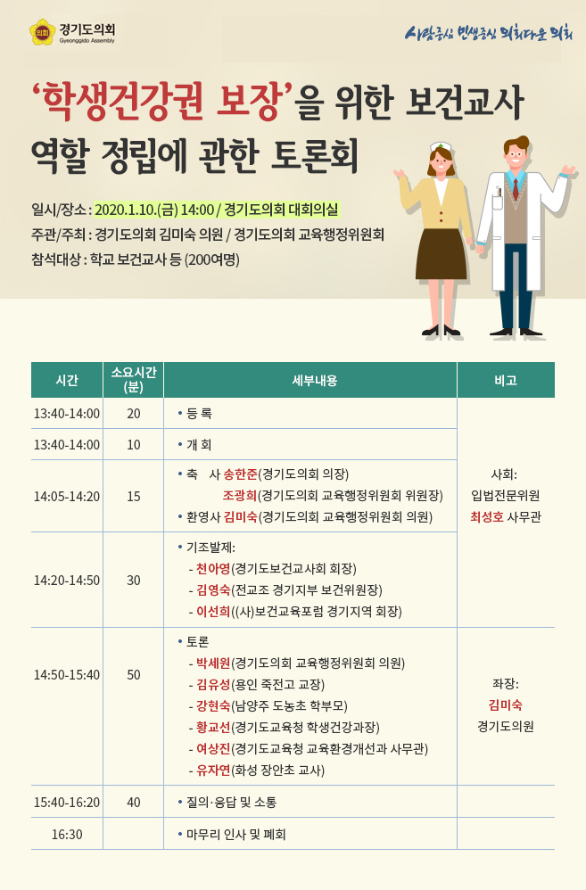 주관: 김미숙 경기도의회 의원, 경기도의회 교육행정위원회