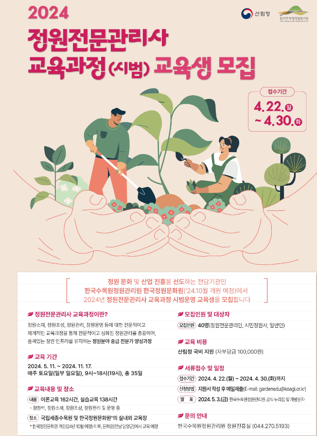 2024년 정원정문관리사 교육과정(시범) 교육생 모집 안내(한국수목원정원관리원)