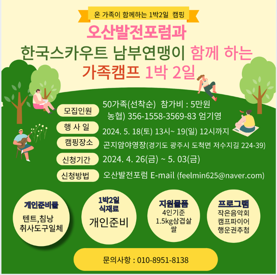 [오산시교육재단] 온 가족이 함께하는 1박2일 캠핑 참여자 모집
