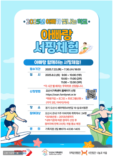 [오산시가족센터]2025아빠가빛나는학교-아빠랑 서핑체험 참여자 모집