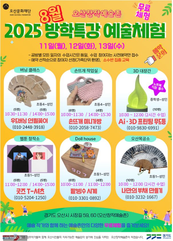 (선착순)8월 무료 방학특강 예술체험 in 오산창작예술촌
