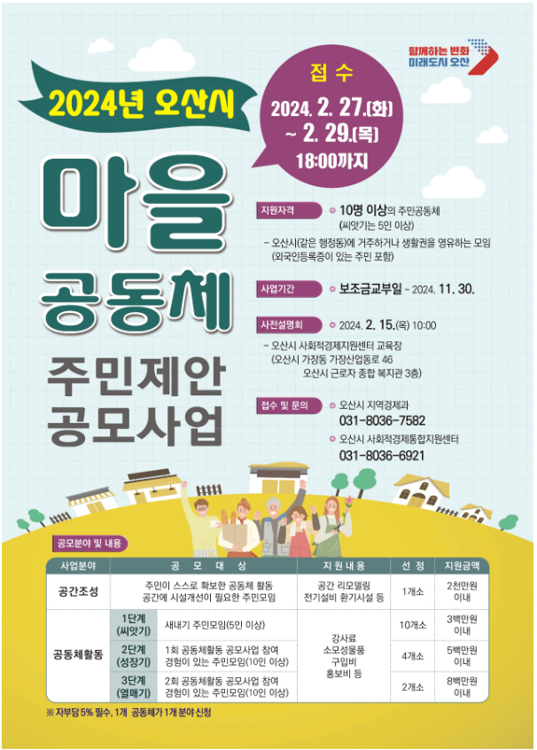 2024년 오산시 마을공동체 주민제안 공모사업 안내